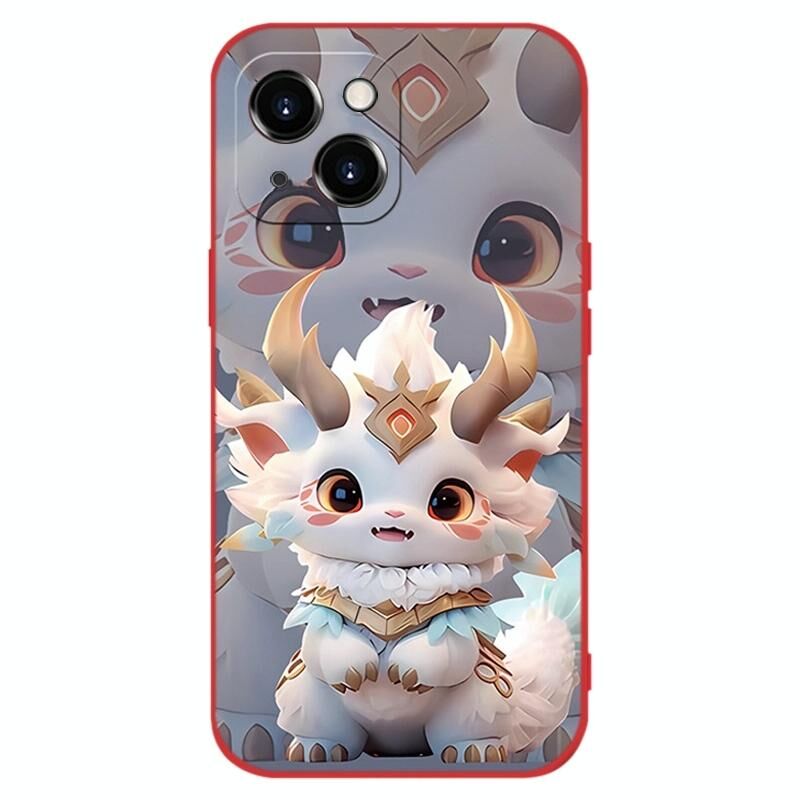 Θήκη σιλικόνης για iPhone 13 mini, αντικραδασμική, κόκκινη για το Νέο Έτος (Χαριτωμένος Ροζ Δράκος)