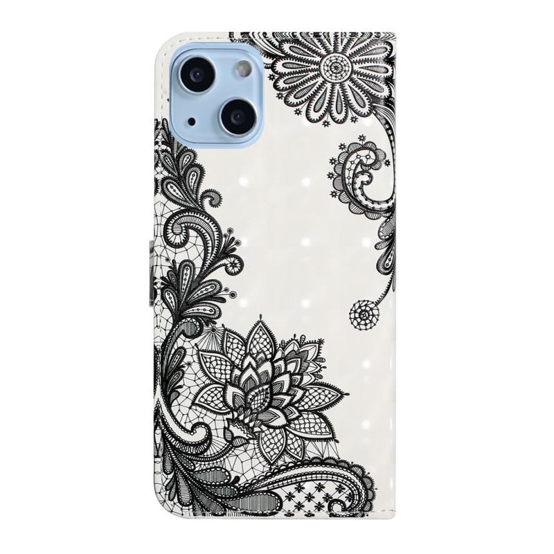 For iPhone 13 mini Oil Embossed 3D Drawing Leather Phone Case(Lace Flower)
