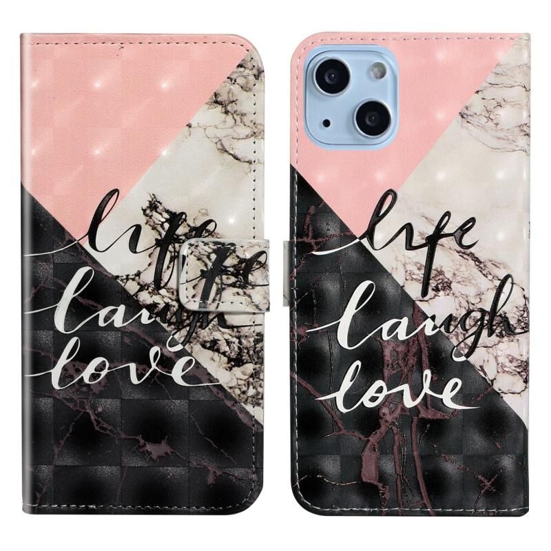 Θήκη τηλεφώνου δερμάτινη με ανάγλυφο σχέδιο λαδιού και τρισδιάστατη σχεδίαση για iPhone 13 mini (Ραφή Μαρμάρου)