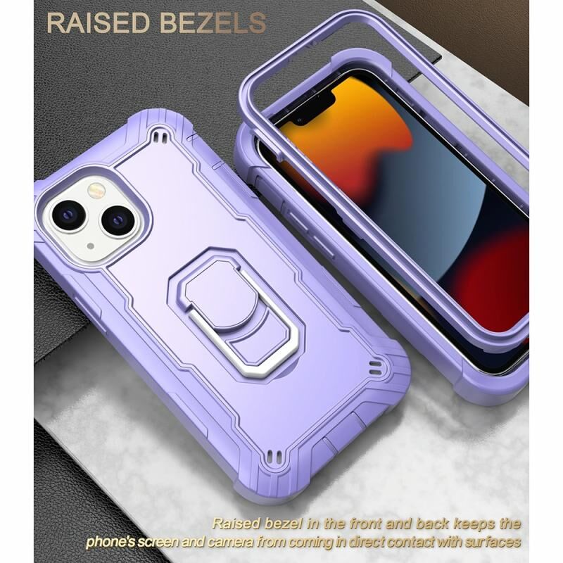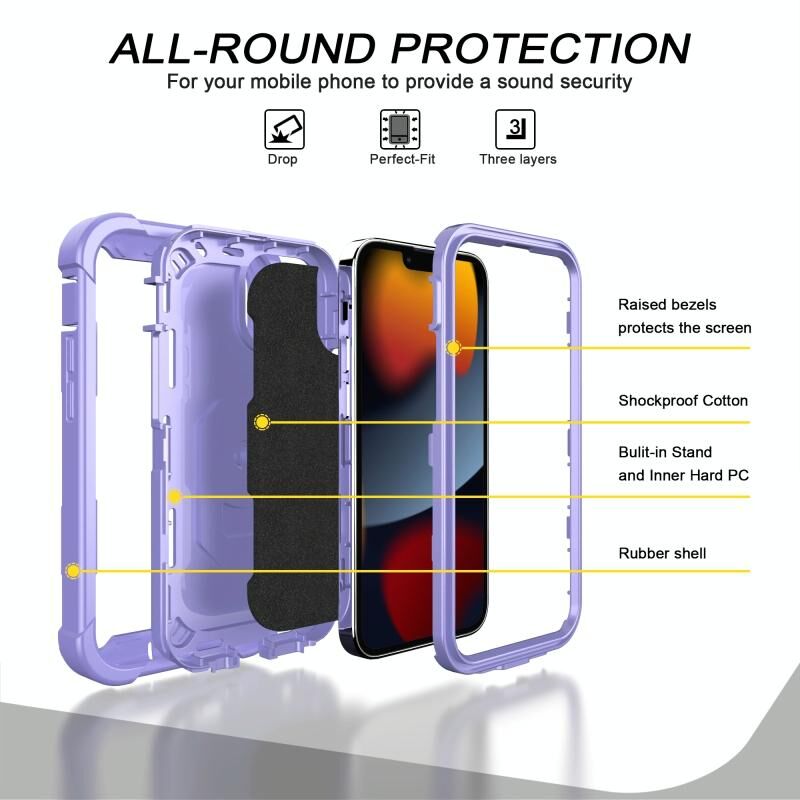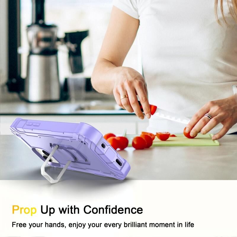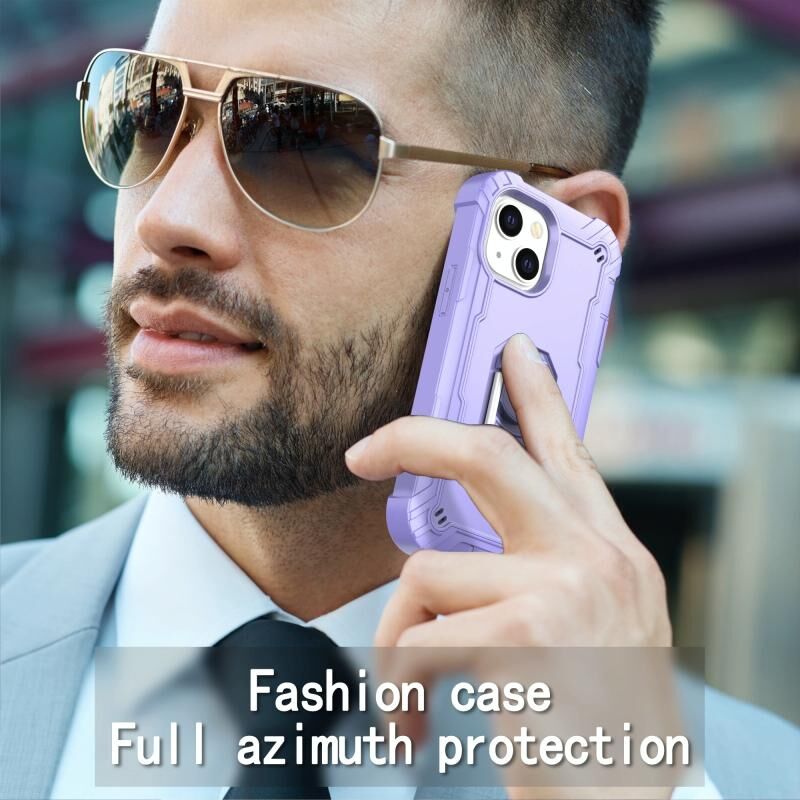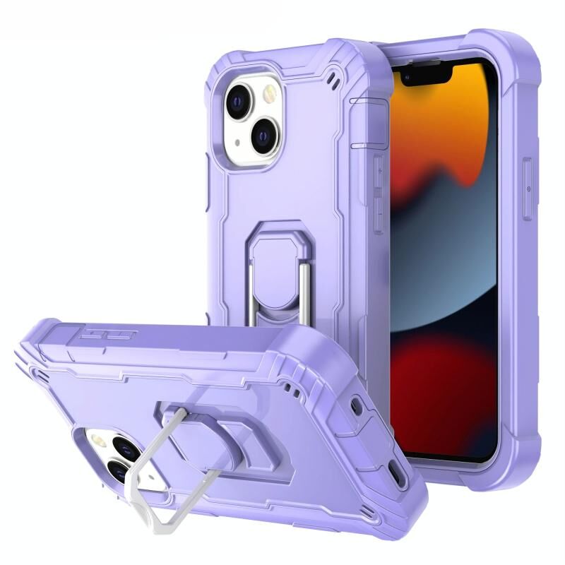 For iPhone 13 mini PC + Rubber 3-layers Shockproof Protective Case with Rotating Holder (Purple)