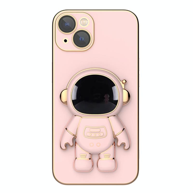 For iPhone 13 mini Plating Astronaut Holder Phone Case with Lens Film (Pink)