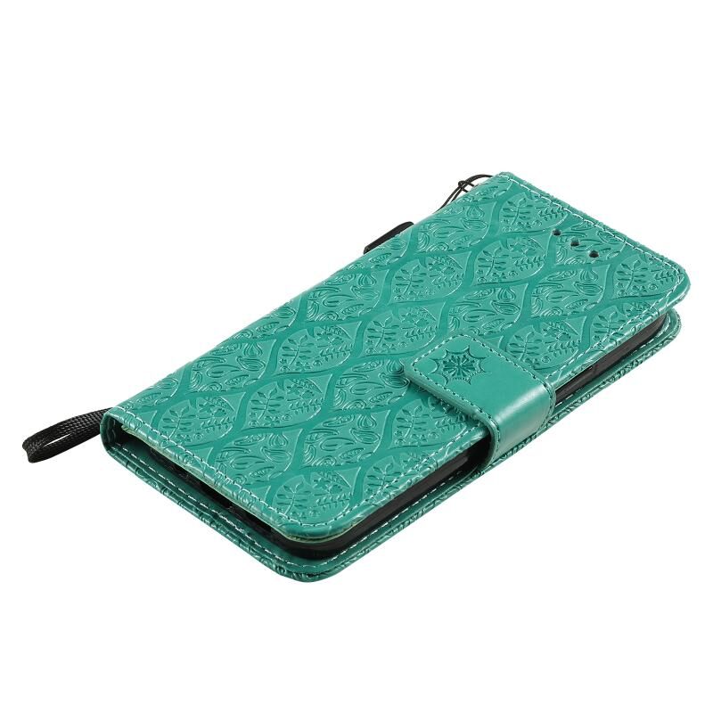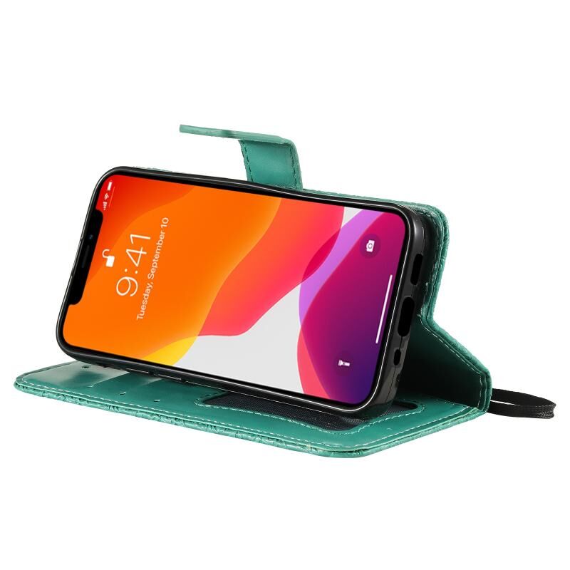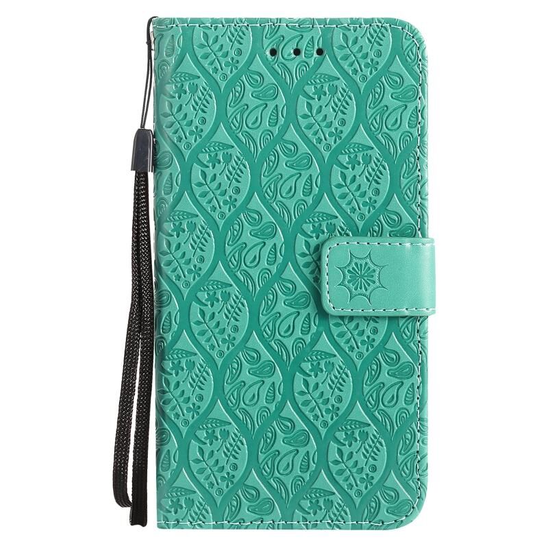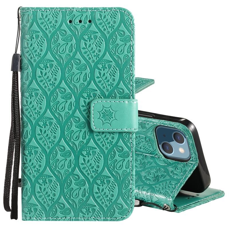 Θήκη για iPhone 13 mini με εκτύπωση Pressed Printing, σχέδιο λουλουδιών από ρατάν, οριζόντια αναδιπλούμενη από δερματίνη PU με βάση στήριξης & υποδοχές καρτών & πορτοφόλι & κορνίζα φωτογραφιών (Μπλε)