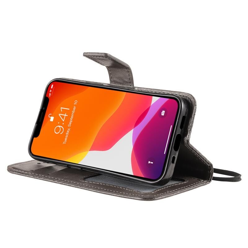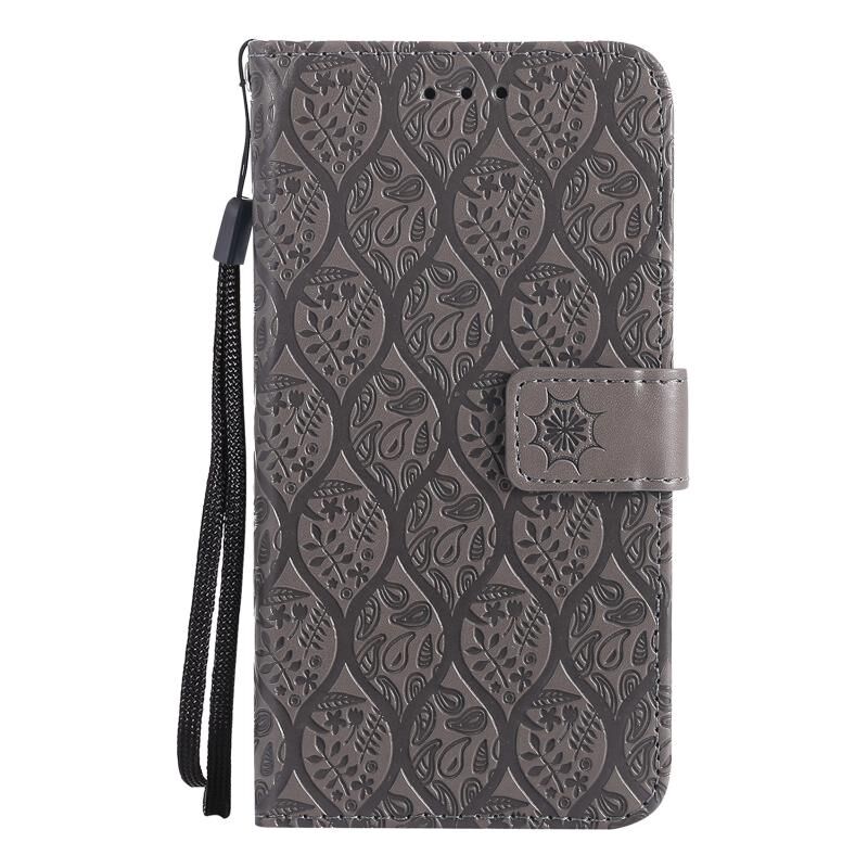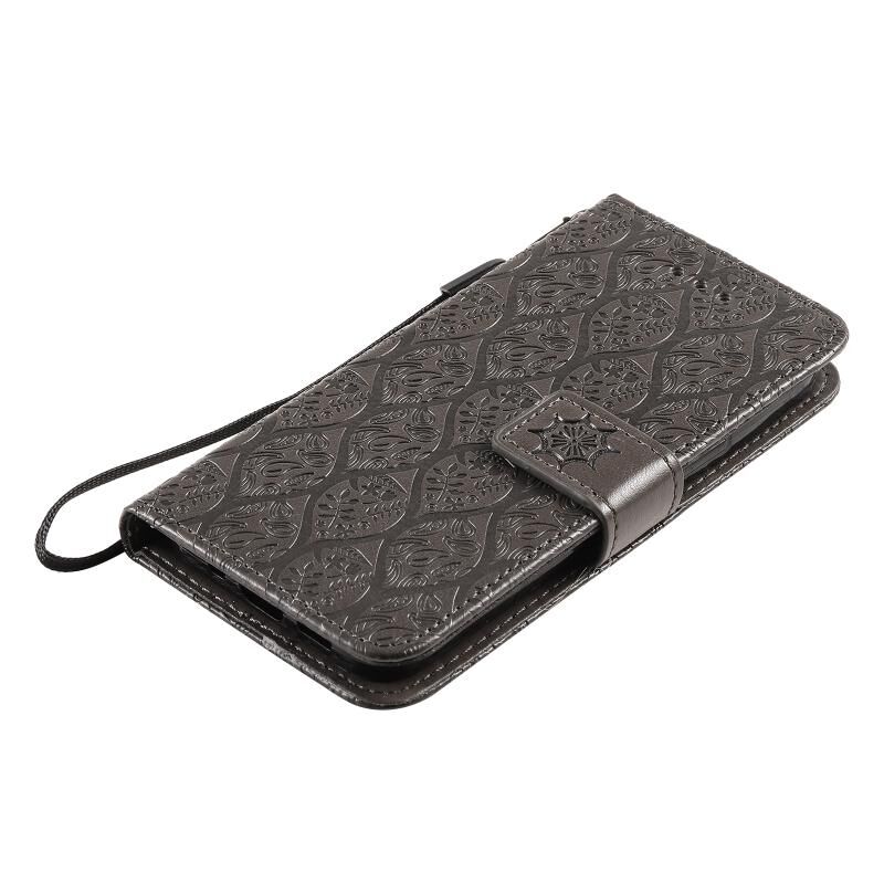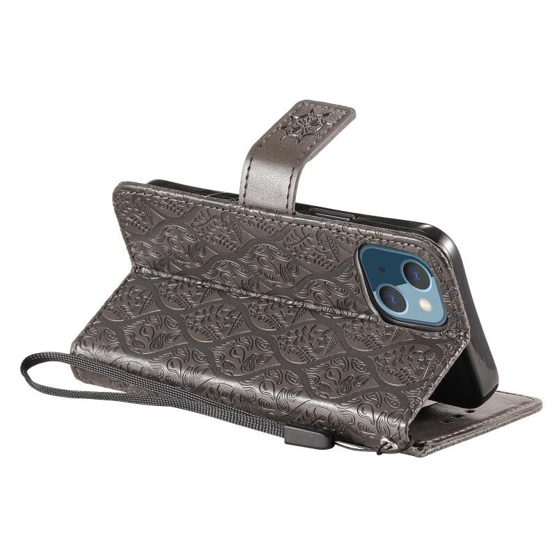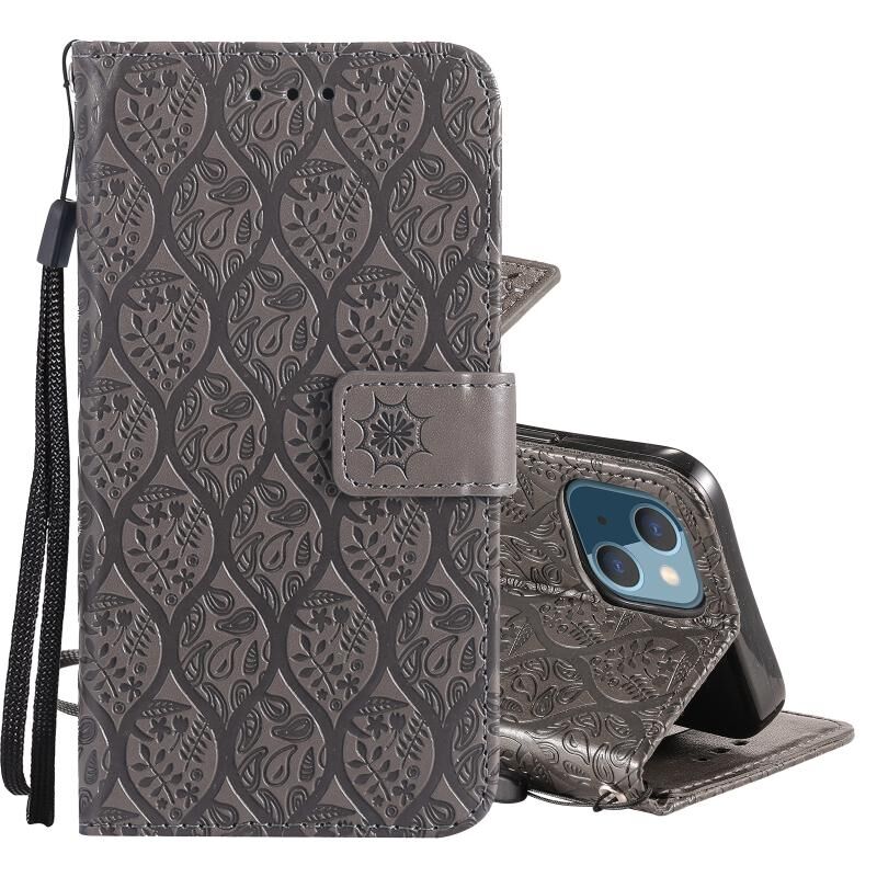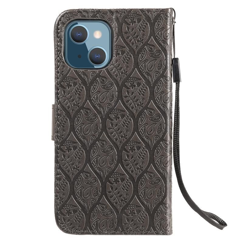 Θήκη για iPhone 13 mini με εκτύπωση Pressed Printing, σχέδιο λουλουδιών από ρατάν, οριζόντια αναδιπλούμενη από δερματίνη PU με βάση στήριξης & υποδοχές καρτών & πορτοφόλι & κορνίζα φωτογραφιών (Μπλε)