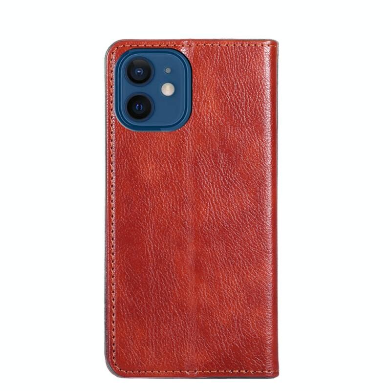 Θήκη δέρματος με οριζόντιο άνοιγμα, μαγνητικό κλείσιμο για iPhone 13 mini, από PU + TPU, γυαλιστερό λάδι, μονόχρωμη, με βάση & θήκη καρτών & πορτοφόλι (Καφέ)