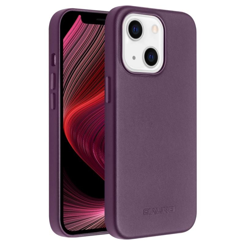 For iPhone 13 mini QIALINO Nappa Cowhide MagSafe Magnetic Protective Case (Purple Crystal) (QIALINO)