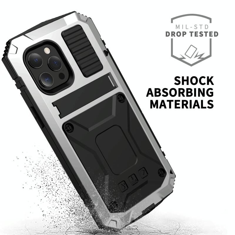 For iPhone 13 mini R-JUST Shockproof Waterproof Dust-proof Metal + Silicone Protective Case with Holder (Silver) (R-JUST)