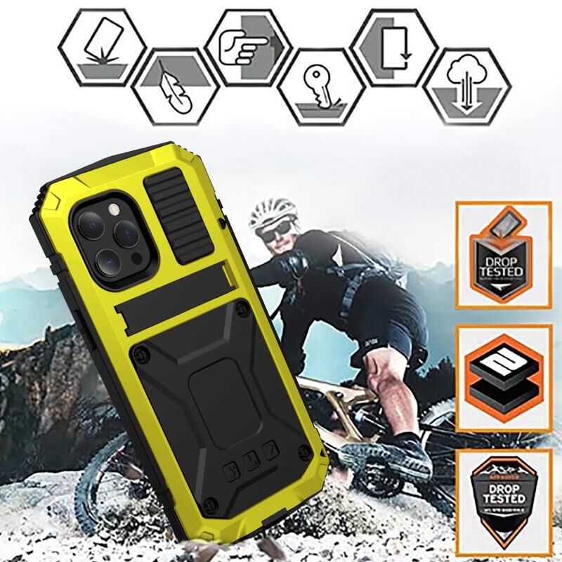 For iPhone 13 mini R-JUST Shockproof Waterproof Dust-proof Metal + Silicone Protective Case with Holder (Yellow) (R-JUST)