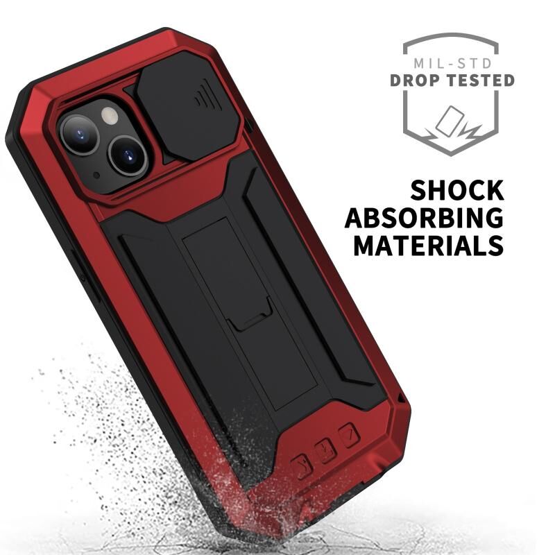 For iPhone 13 mini R-JUST Sliding Camera Shockproof Life Waterproof Dust-proof Metal + Silicone Protective Case with Holder (Red) (R-JUST)