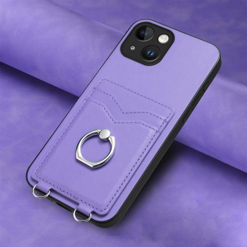For iPhone 13 mini R20 Ring Card Holder Phone Case(Purple)