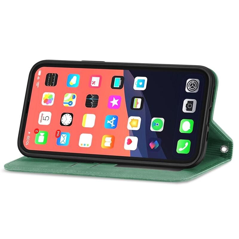 Θήκη για iPhone 13 mini με υφή retro, επαγγελματική, μαγνητική, οριζόντια, δερμάτινη με βάση, θήκες για κάρτες, πορτοφόλι & κορνίζα φωτογραφιών (πράσινο)