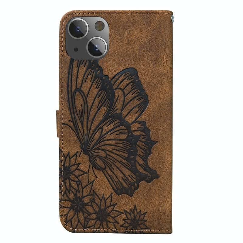 Θήκη δέρματος οριζόντιας αναδίπλωσης για iPhone 13 mini με ανάγλυφο σχέδιο πεταλούδων και ρετρό αίσθηση, με βάση στήριξης & θήκες καρτών & πορτοφόλι (Κόκκινο)