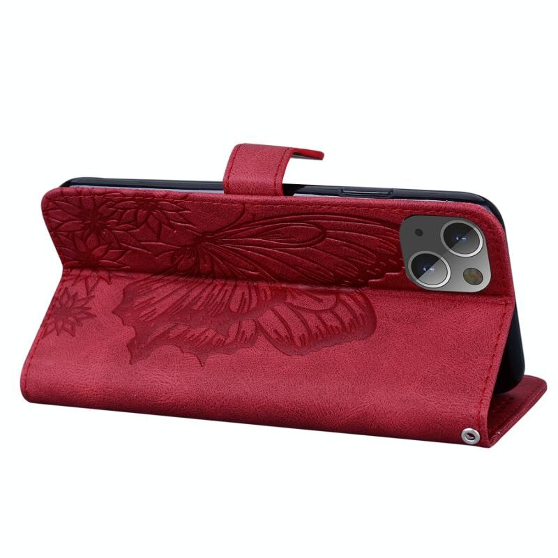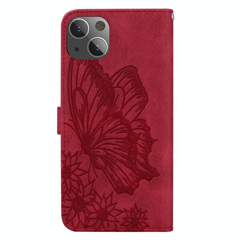 Θήκη δέρματος οριζόντιας αναδίπλωσης για iPhone 13 mini με ανάγλυφο σχέδιο πεταλούδων και ρετρό αίσθηση, με βάση στήριξης & θήκες καρτών & πορτοφόλι (Κόκκινο)