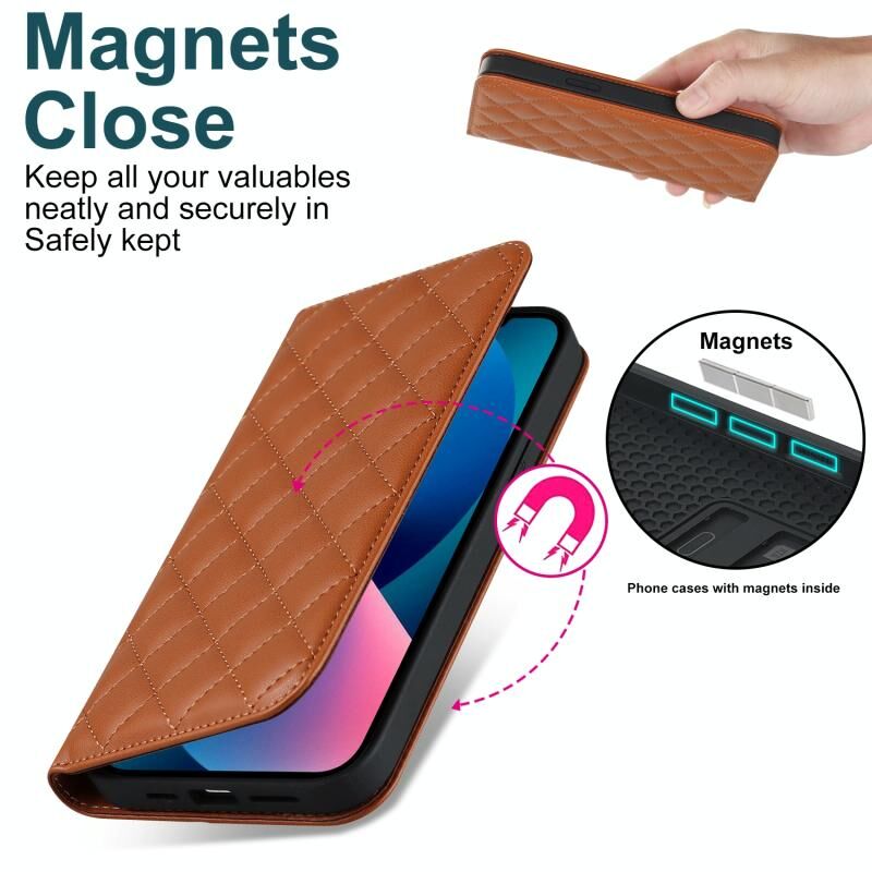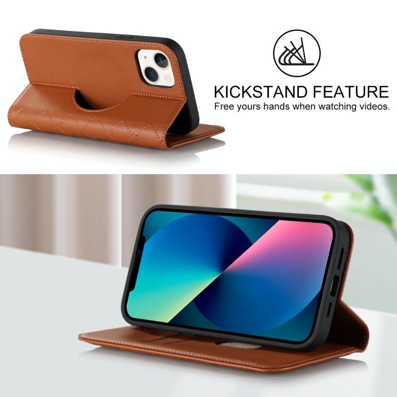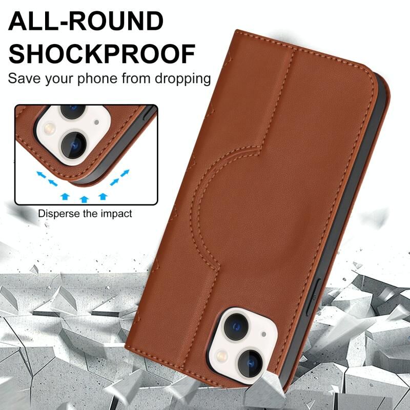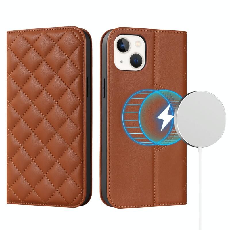 For iPhone 13 mini Rhombic MagSafe RFID Anti-Theft Wallet Leather Phone Case(Brown)
