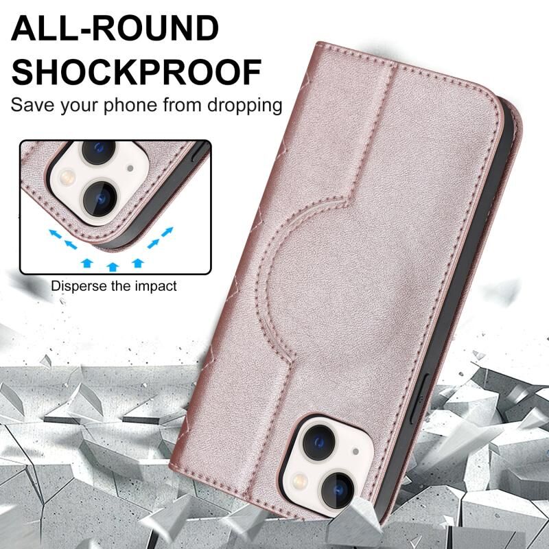 Θήκη τηλεφώνου δερμάτινη με προστασία RFID και MagSafe για iPhone 13 mini, σε λευκό χρώμα, με ρόμβους.