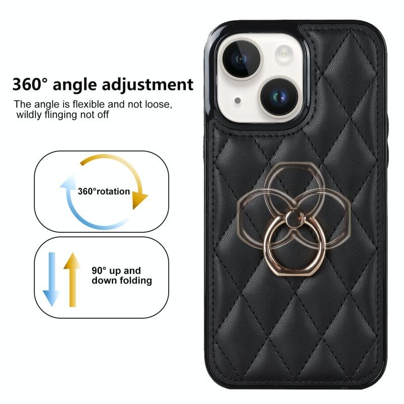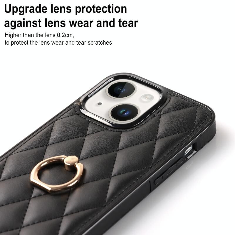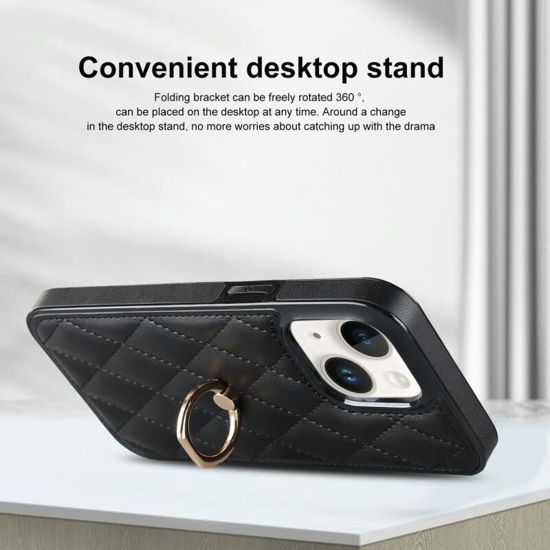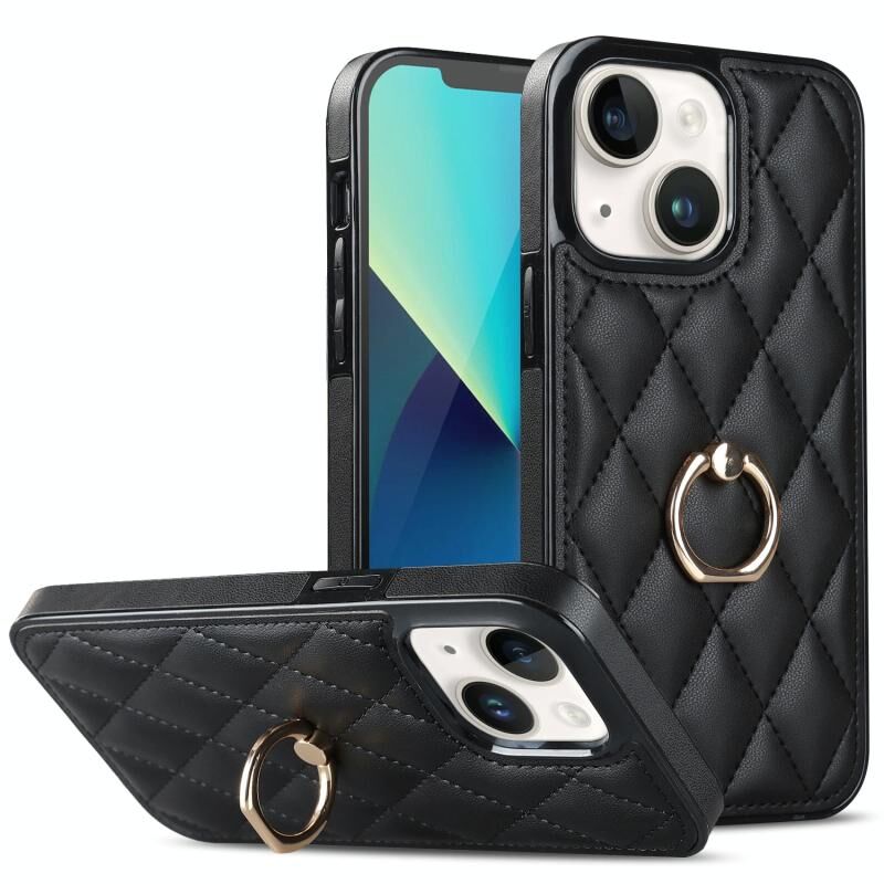 Θήκη τηλεφώνου για iPhone 13 mini από δερματίνη με ρόμβους και δακτύλιο στήριξης (Λευκό)