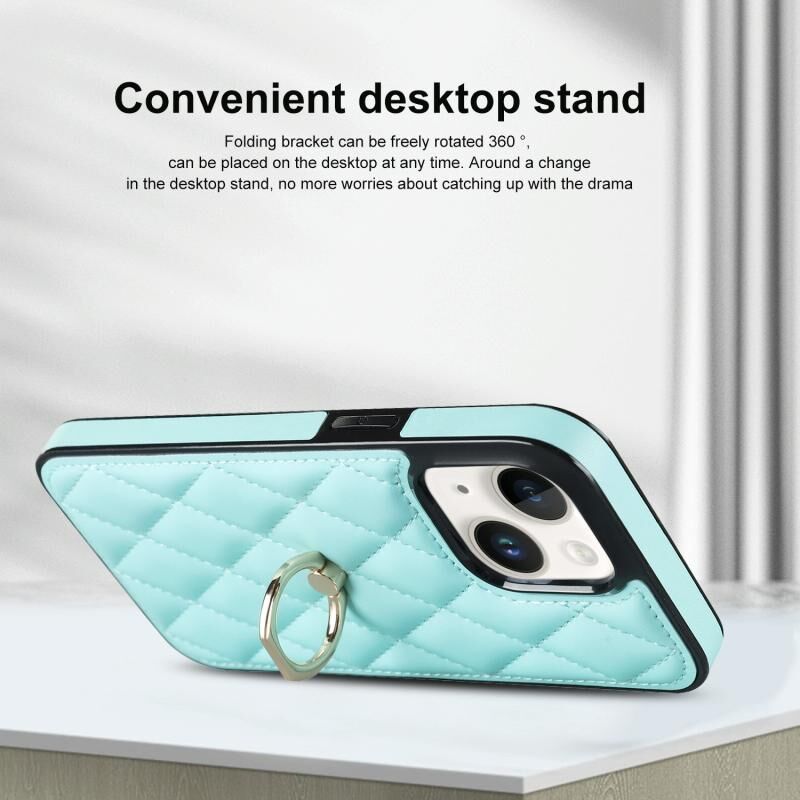 Θήκη τηλεφώνου για iPhone 13 mini από δερματίνη με ρόμβους και δακτύλιο στήριξης (Λευκό)