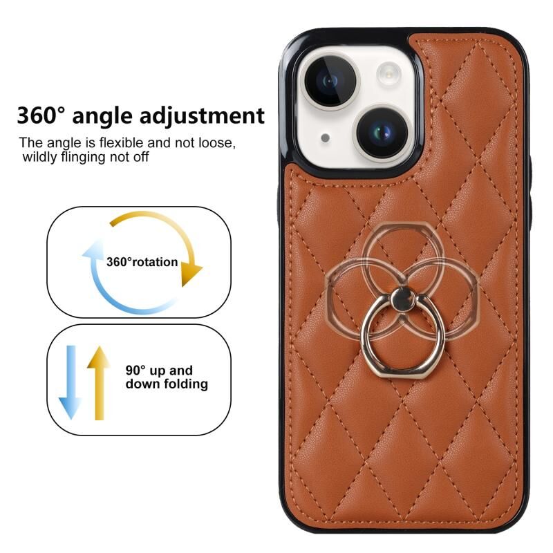 Θήκη τηλεφώνου για iPhone 13 mini από δερματίνη με ρόμβους και δακτύλιο στήριξης (Λευκό)