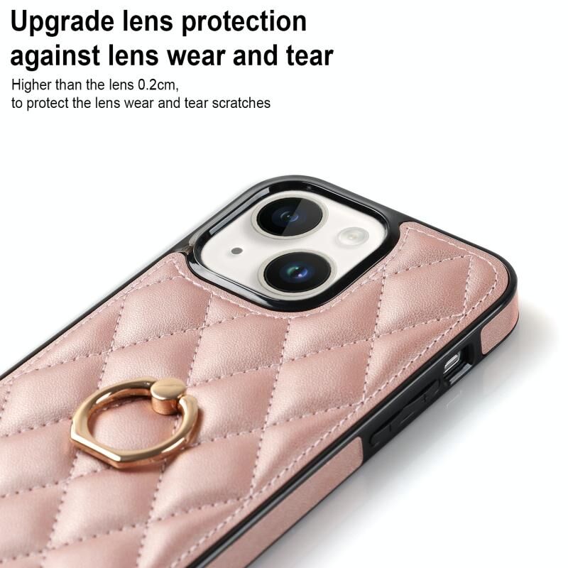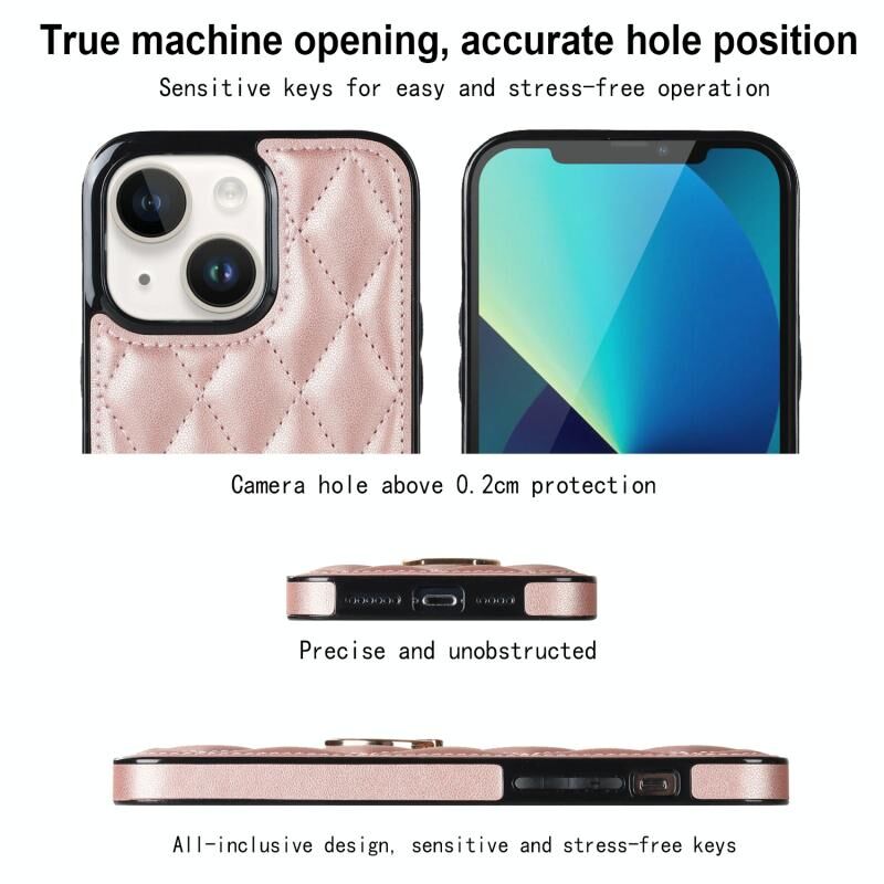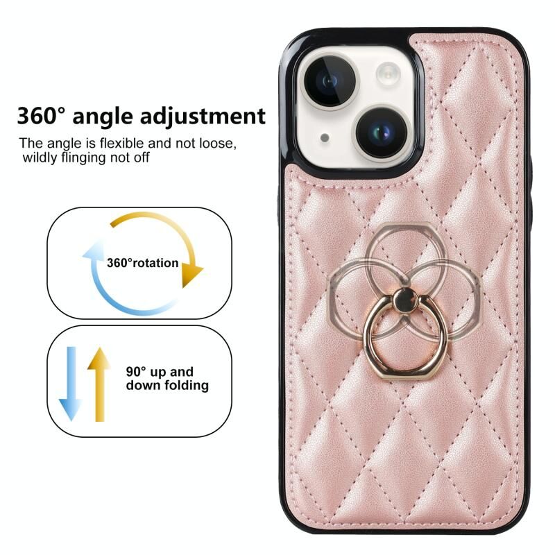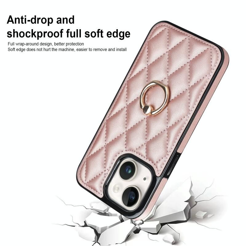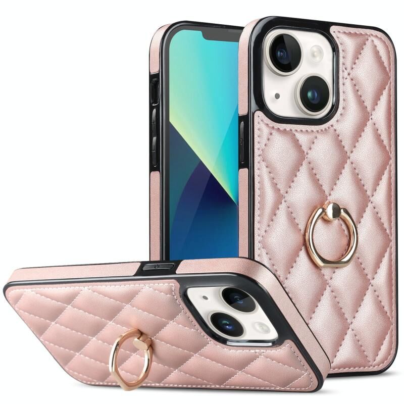 For iPhone 13 mini Rhombic PU Leather Phone Case with Ring Holder(Rose Gold)