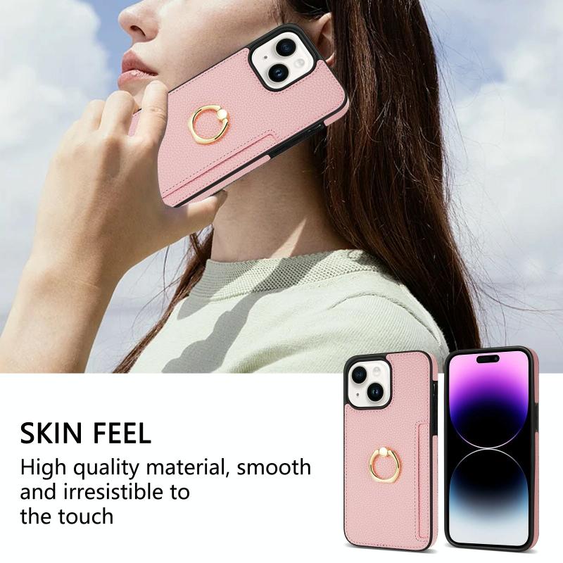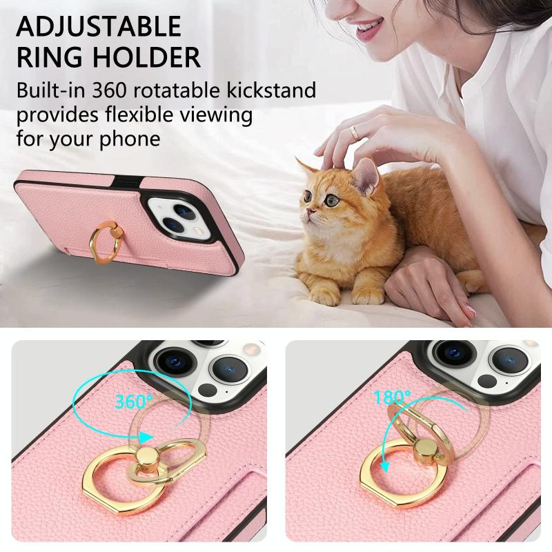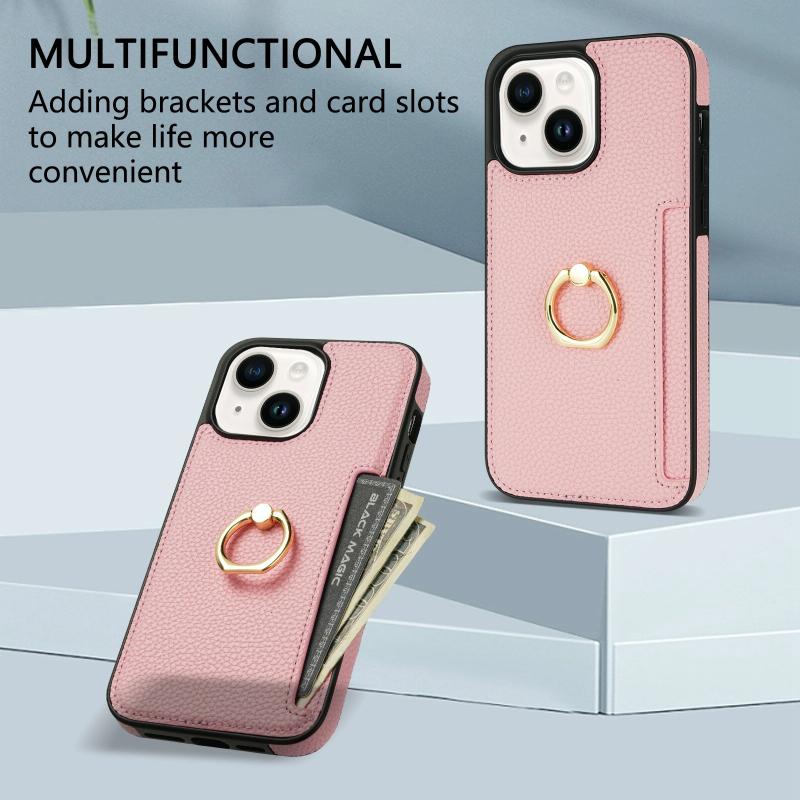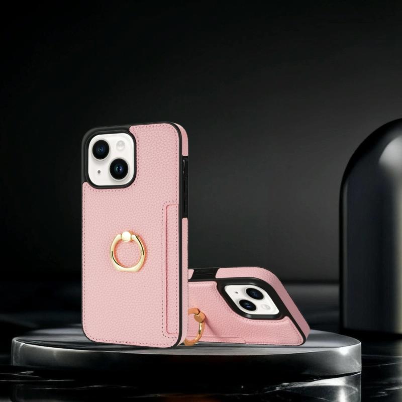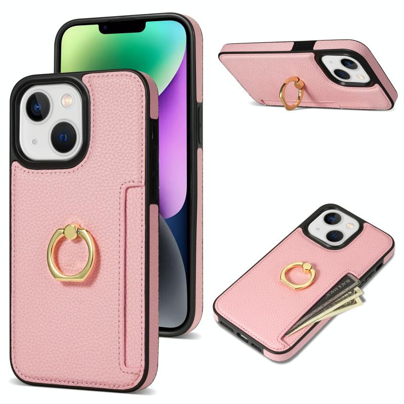 Θήκη iPhone 13 mini με Δαχτυλίδι & Κάρτες, Δέρμα Litchi (Ροζ)