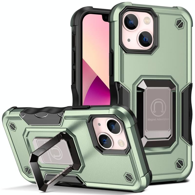 For iPhone 13 mini Ring Holder Non-slip Armor Phone Case (Green)