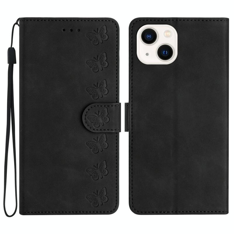 Θήκη Δερμάτινη με ανάγλυφα Πεταλούδια για iPhone 13 mini (Μαύρο)