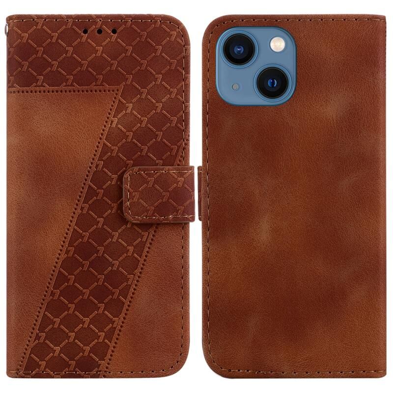 Θήκη τηλεφώνου από δέρμα με ανάγλυφο σχήμα εφτά για iPhone 13 mini (Καφέ)