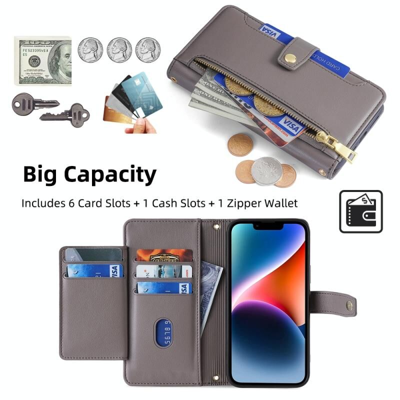 2. Λειτουργία πορτοφολιού πολλαπλών καρτών: Θήκες για κάρτες και διαμέρισμα με φερμουάρ για την αποθήκευση των πιστωτικών σας καρτών, μετρητών ή μικρών σημειώσεων για καθημερινή χρήση.