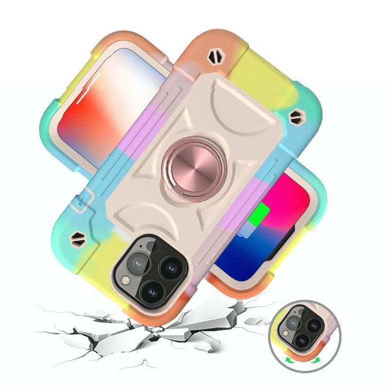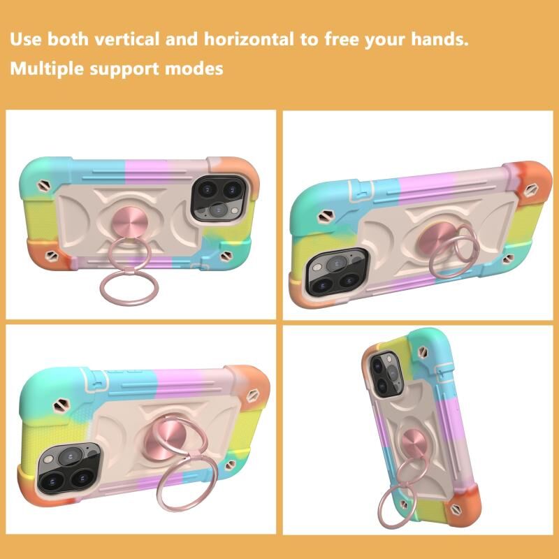 For iPhone 13 mini Shockproof Silicone + PC Protective Case with Dual-Ring Holder (Colorful Rose Gold)