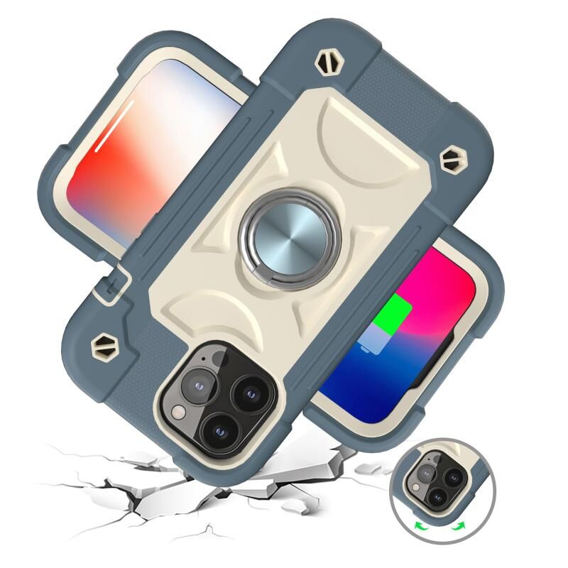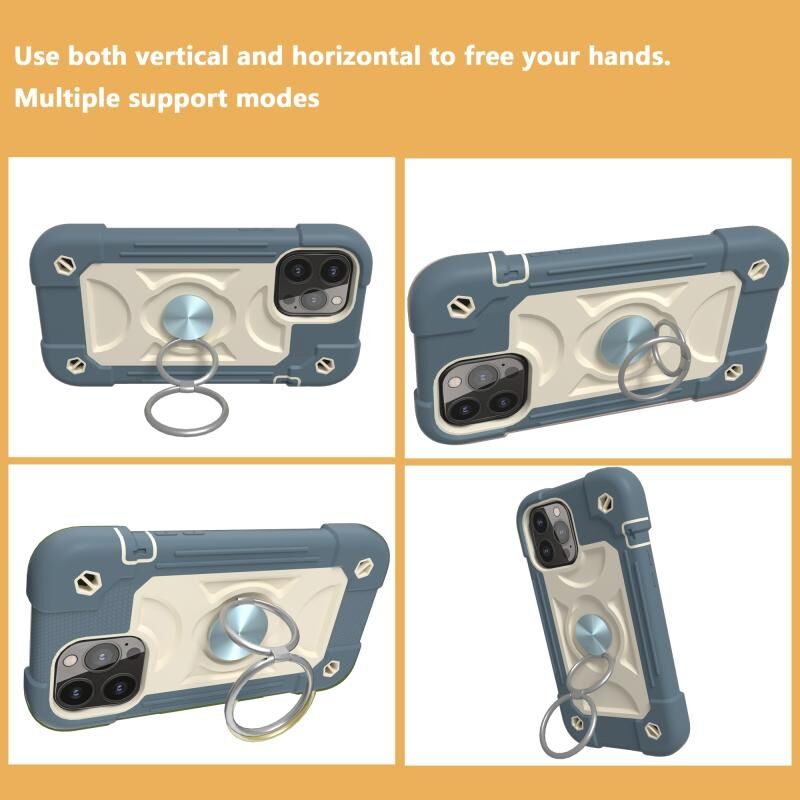For iPhone 13 mini Shockproof Silicone + PC Protective Case with Dual-Ring Holder (Daisy Blue)