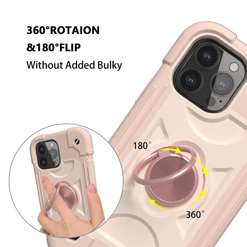 For iPhone 13 mini Shockproof Silicone + PC Protective Case with Dual-Ring Holder (Rose Gold)