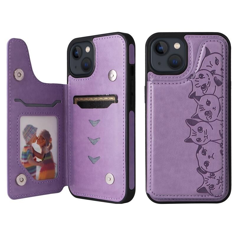 Θήκη κινητού τηλεφώνου για iPhone 13 mini με ανάγλυφο σχέδιο έξι γατών, αντικραδασμική (Μαύρο)
