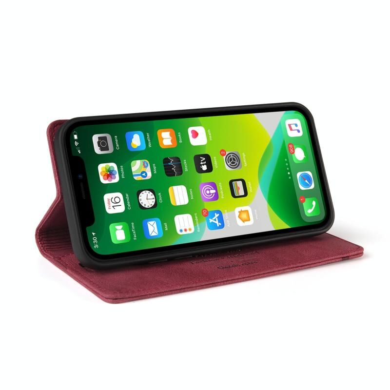 For iPhone 13 mini Skin Feel Anti-theft Brush Horizontal Flip Leather Case with Holder & Card Slots & Wallet (Wine Red)