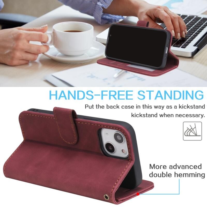 Θήκη τηλεφώνου δέρμα τύπου flip οριζόντια αντι-κλοπής με αίσθηση δέρματος για iPhone 13 mini (Καφέ)
