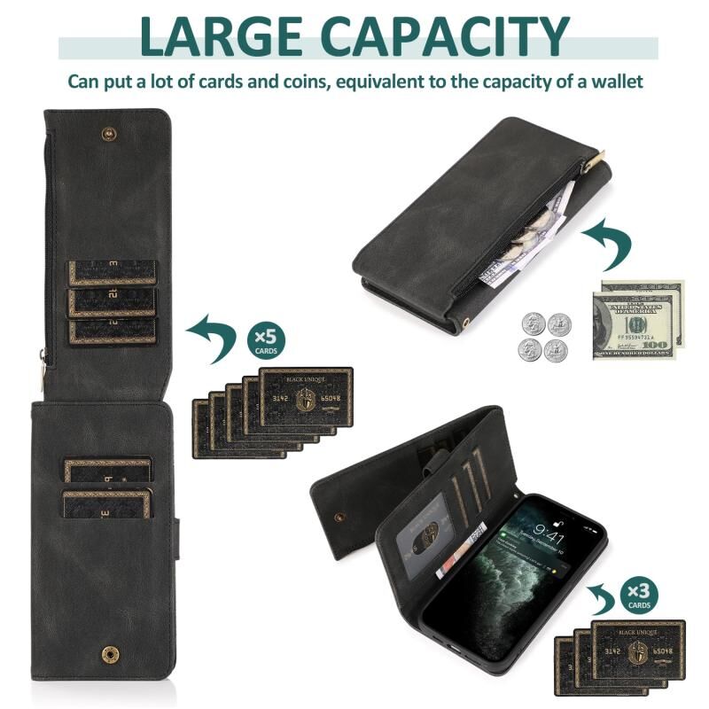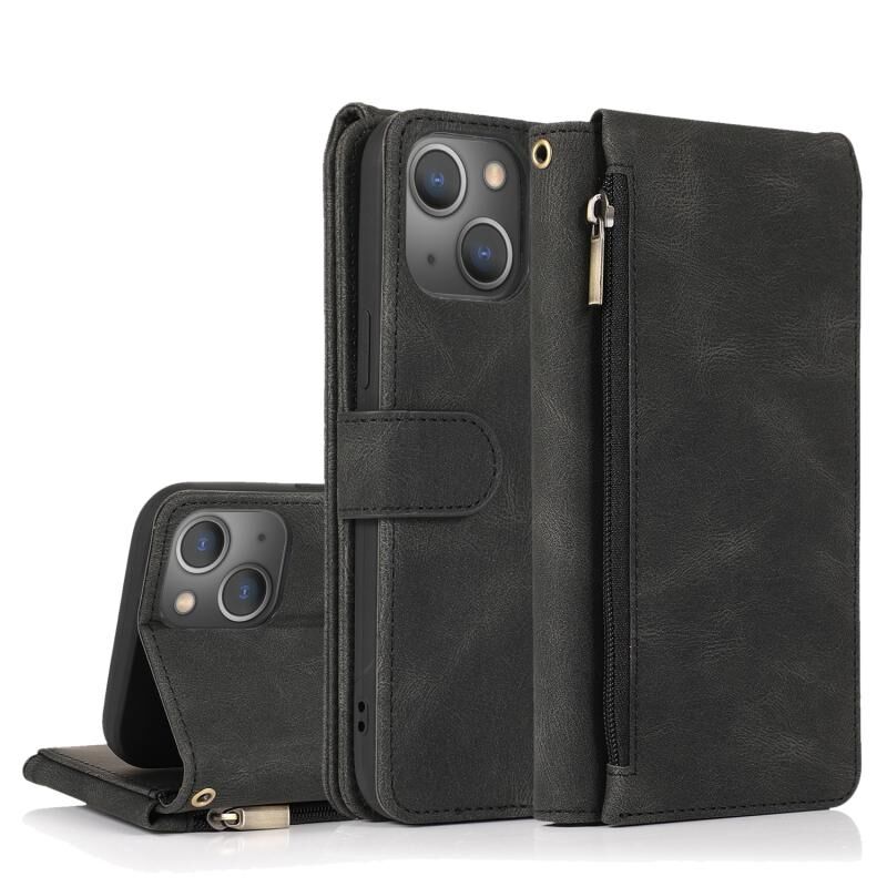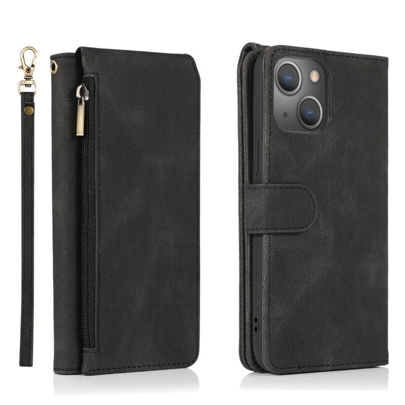 For iPhone 13 mini Skin-feel Crazy Horse Texture Zipper Wallet Bag Horizontal Flip Leather Case with Holder & Card Slots & Wallet & Lanyard (Black)