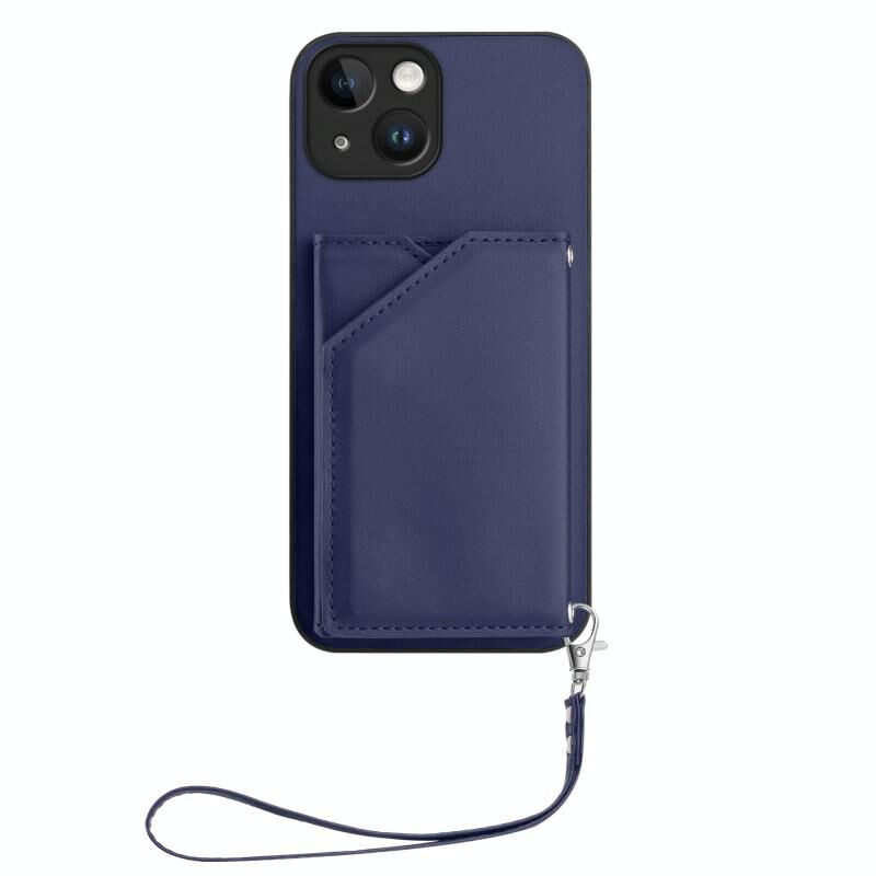 Θήκη τηλεφώνου για iPhone 13 mini με υφή δέρματος, τέσσερις θήκες για κάρτες και λουρί καρπού (Ροζ)