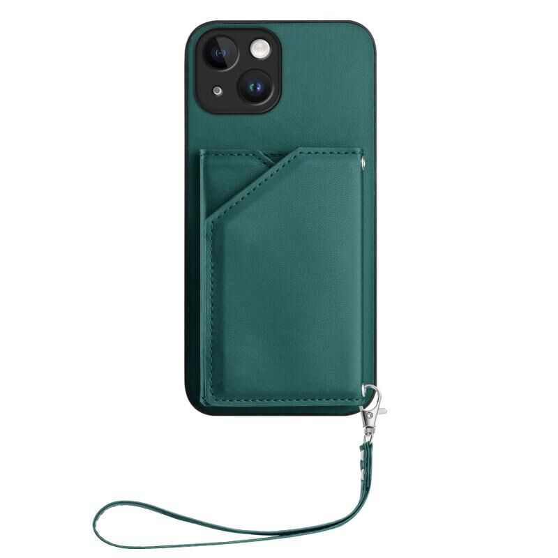 For iPhone 13 mini Skin Feel Four Card Slots Phone Case with Wrist Strap(Green)