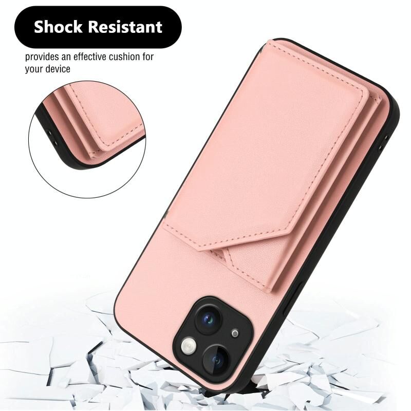 Θήκη τηλεφώνου για iPhone 13 mini με υφή δέρματος, τέσσερις θήκες για κάρτες και λουρί καρπού (Ροζ)