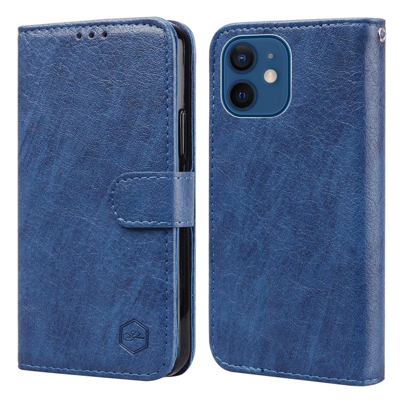 For iPhone 13 mini Skin Feeling Oil Leather Texture PU + TPU Phone Case(Dark Blue)