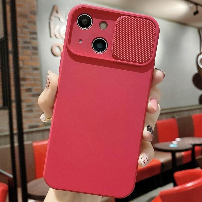 For iPhone 13 mini Slid Camera Shield Liquid Silicone TPU Phone Case(Red)