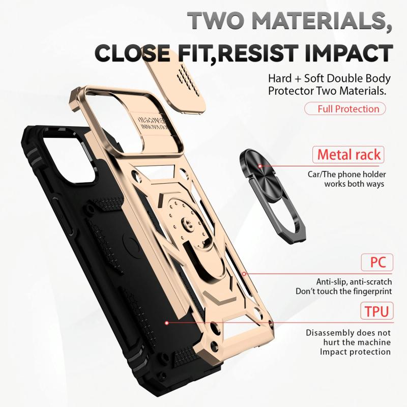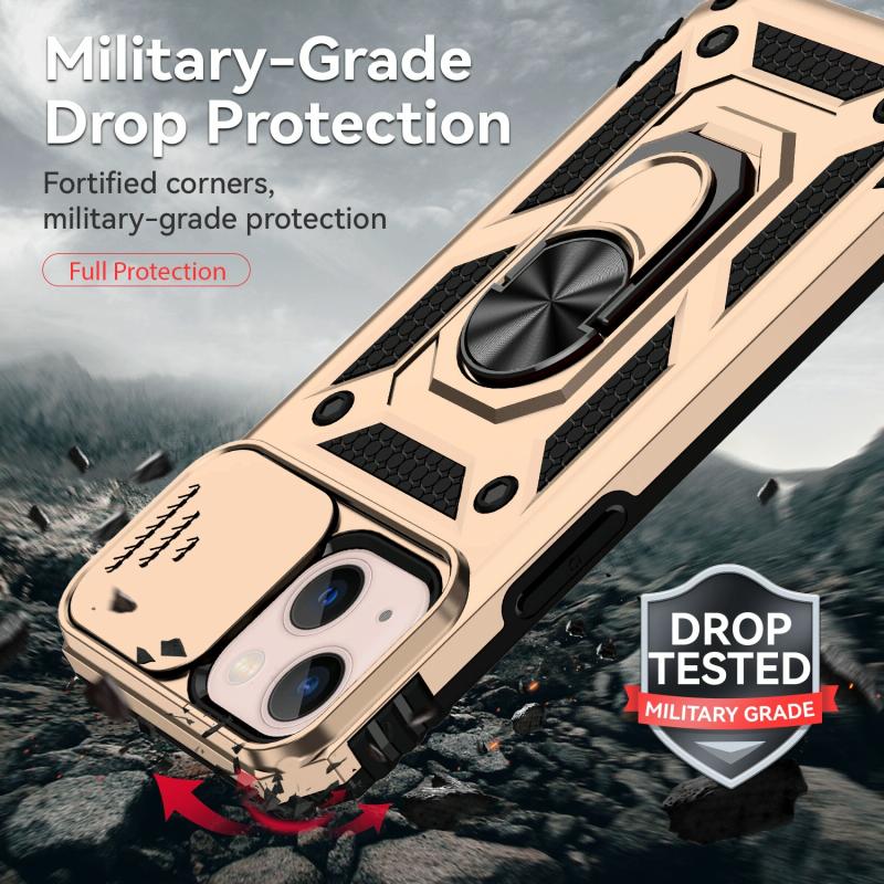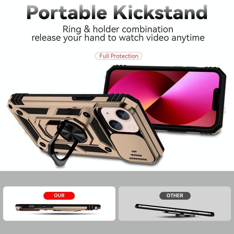 For iPhone 13 mini Sliding Camshield Holder Phone Case (Gold)