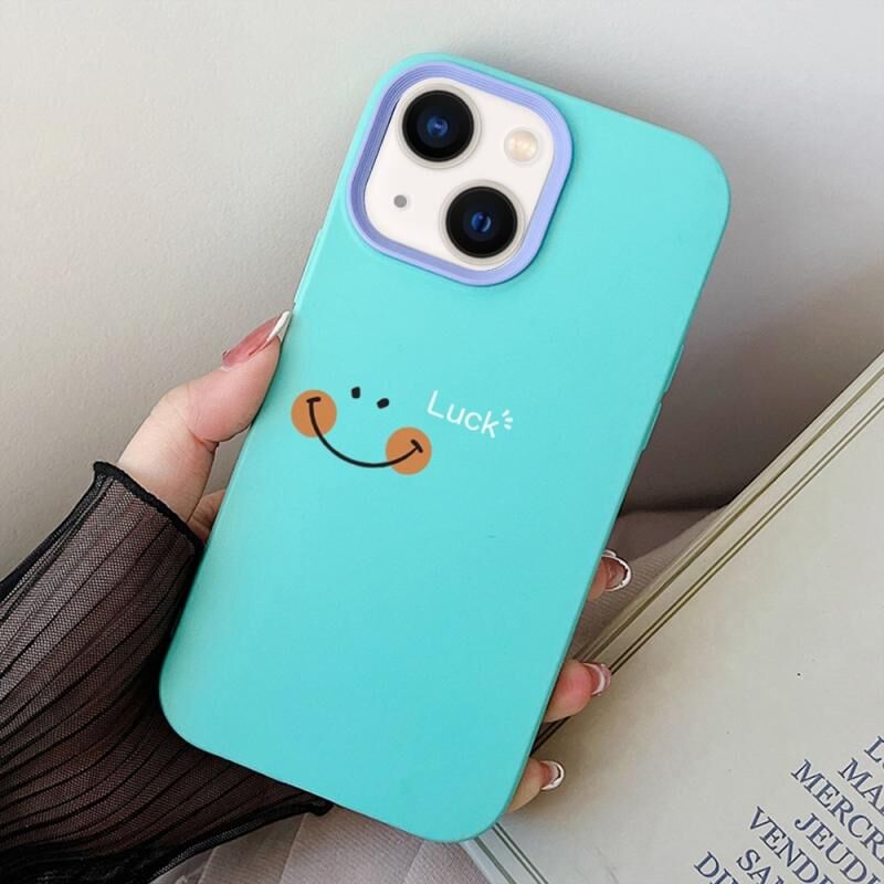 Θήκη τηλεφώνου για iPhone 13 mini, Υβριδική TPU από PC με χαμογελαστό πρόσωπο (Sky Cyan)