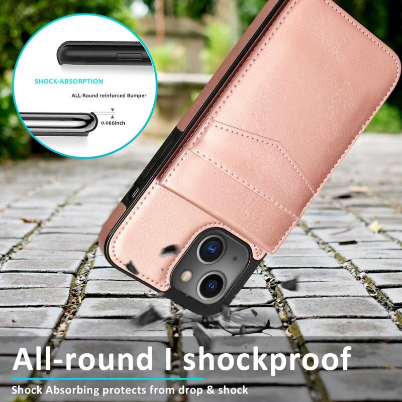For iPhone 13 mini Solid Color PC + TPU Protective Case with Holder & Card Slots (Rose Gold)