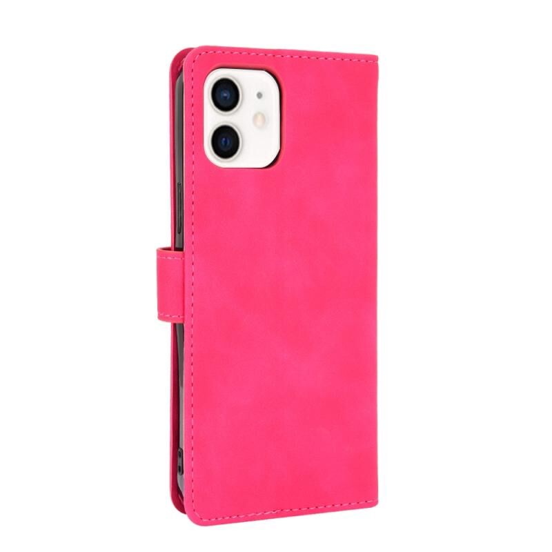 For iPhone 13 mini Solid Color Skin Feel Magnetic Buckle Horizontal Flip Calf Texture PU Leather Case with Holder & Card Slots & Wallet (Rose Red)