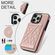 For iPhone 13 mini Splicing Rhombic Texture Card Bag Phone Case with Long Lanyard(Rose Gold)