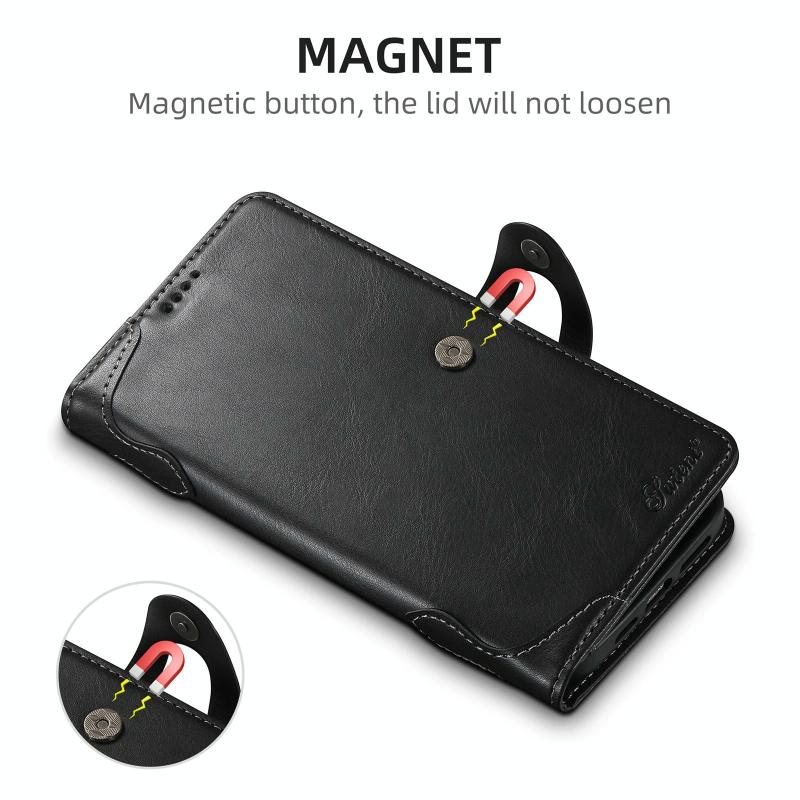 1. Υλικό: Κατασκευασμένο από υψηλής ποιότητας δερματίνη PU, ανθεκτικό TPU και μια εξελιγμένη μεταλλική μαγνητική αγκράφα.