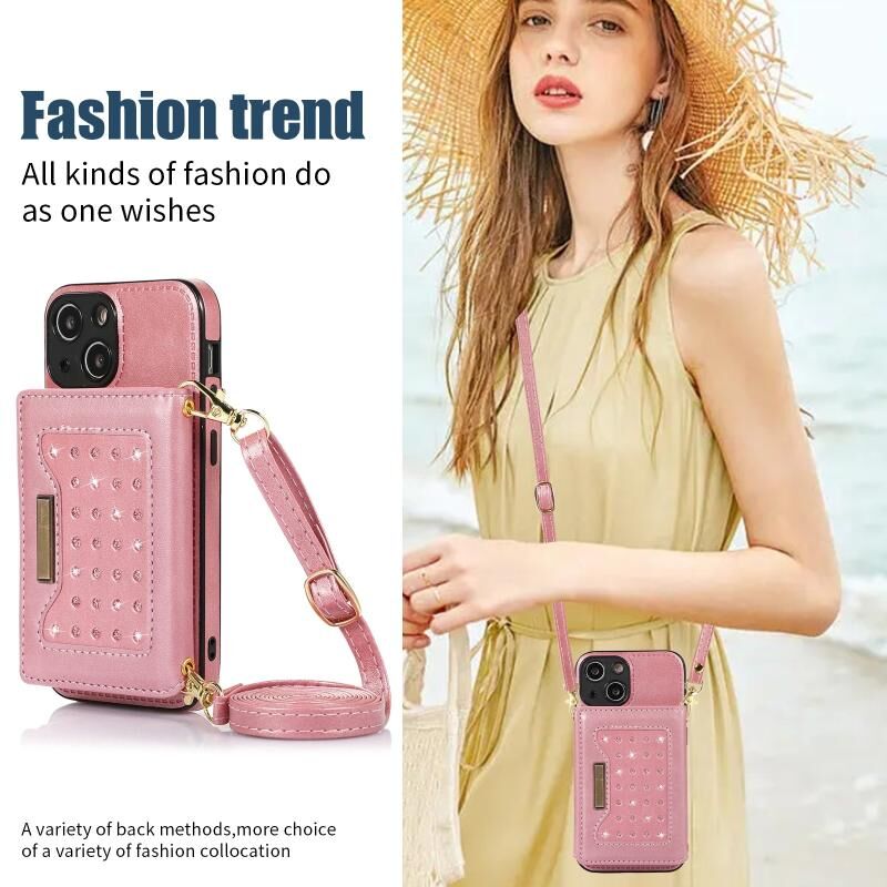 Θήκη τηλεφώνου από δέρμα με προστασία RFID τριπλής πτυχής για iPhone 13 Mini με κορδόνι (Μαύρο)