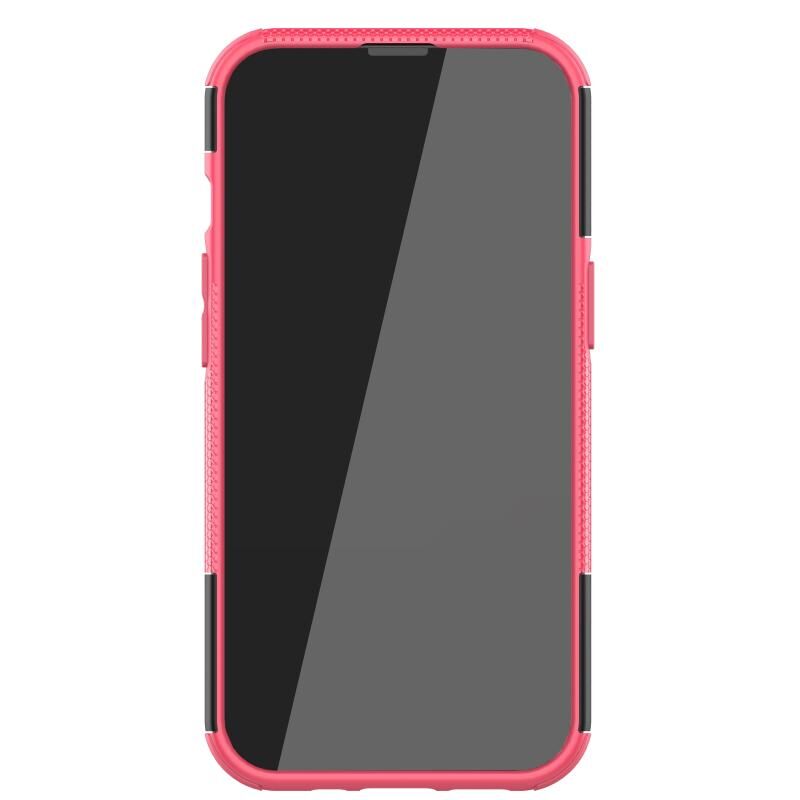 Θήκη προστασίας για iPhone 13 mini με υφή ελαστικού, αντικραδασμική από TPU+PC με βάση στήριξης (Κόκκινη)