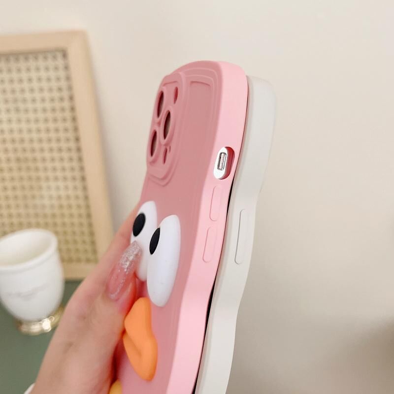 For iPhone 13 mini Wave Edge Big Duck Silicone Phone Case with Wristband(Pink)