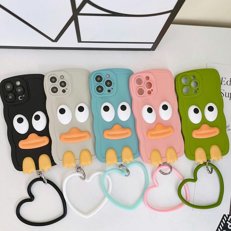 For iPhone 13 mini Wave Edge Big Duck Silicone Phone Case with Wristband(White)