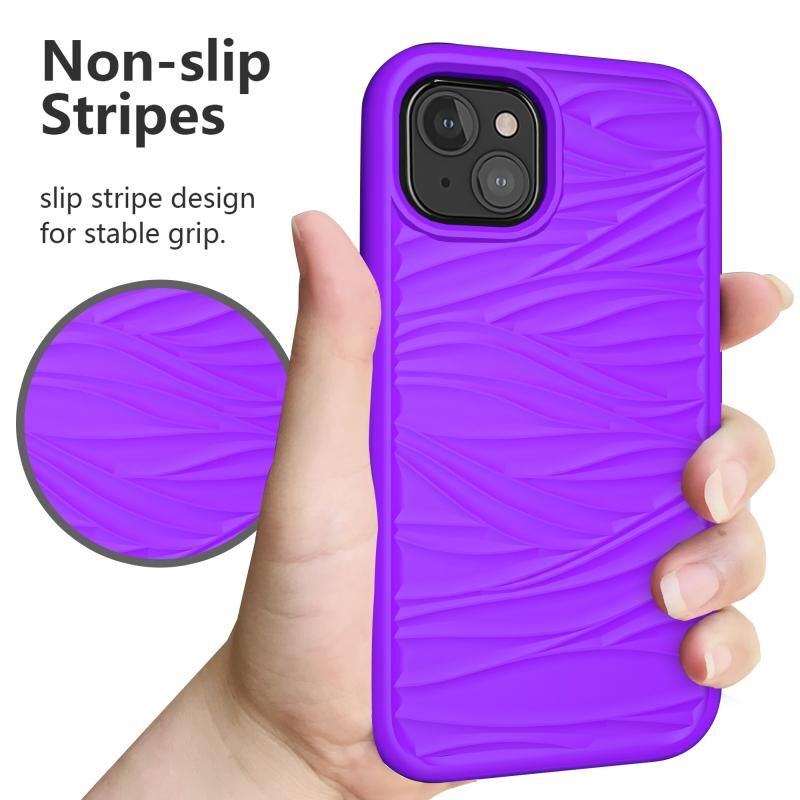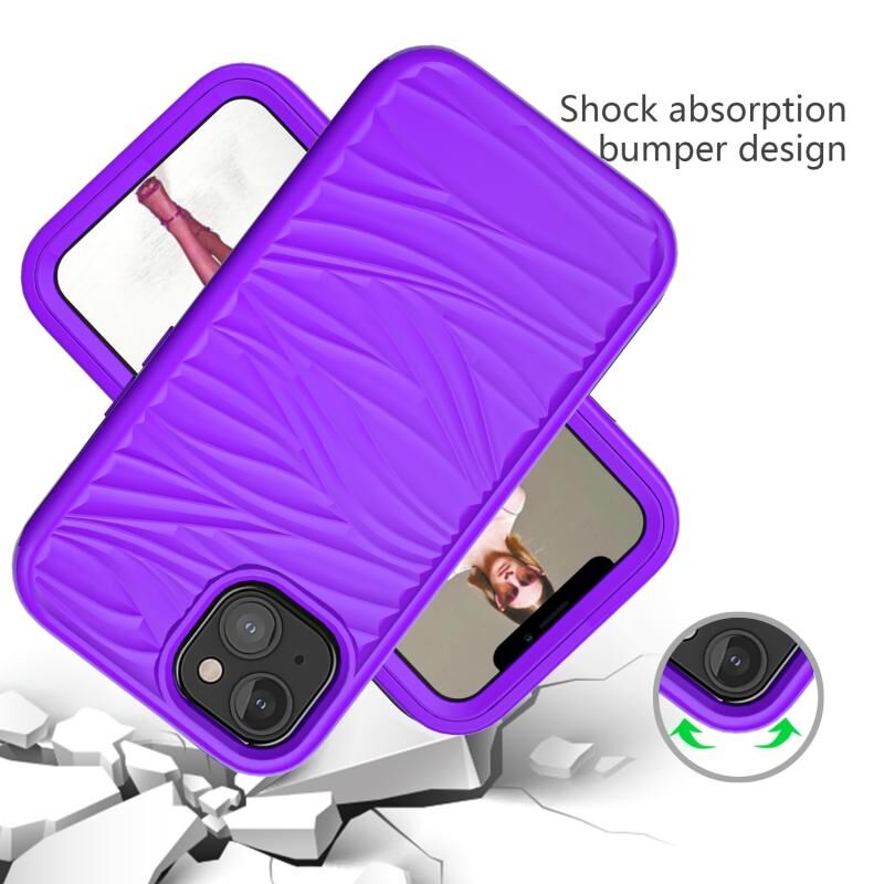 For iPhone 13 mini Wave Pattern 3 in 1 Silicone + PC Shockproof Protective Case (Purple)